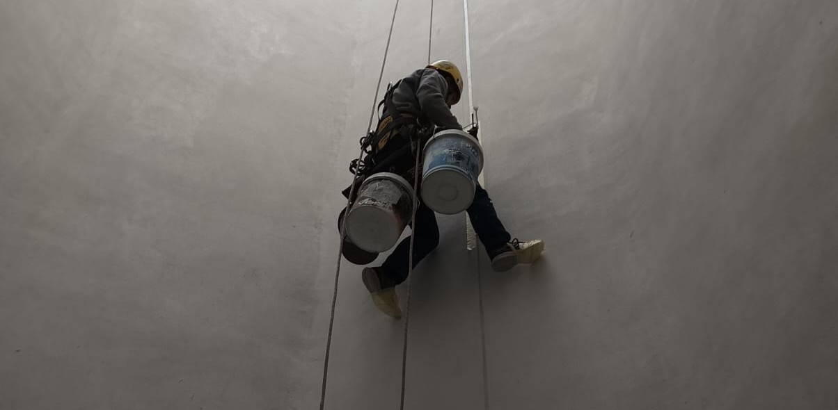 - Cada operario cuenta con arnés integral, anticaídas, bloqueadores, descensor autobloqueante y casco